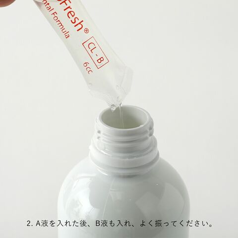 2. 同様に、1.にB液も入れ、よく振ってください。