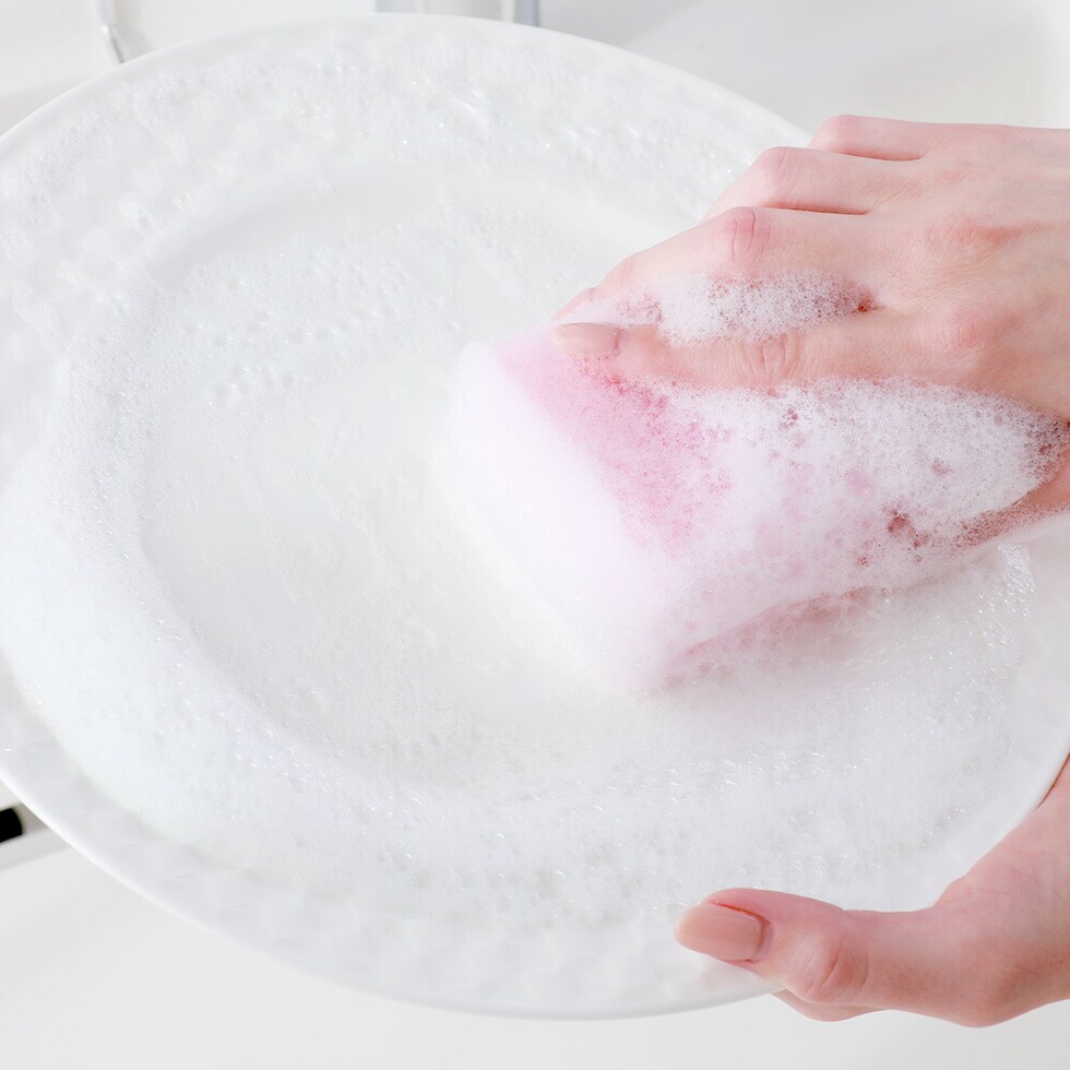 パックスナチュロンのキッチンスポンジは「泡立ち◎」「泡持ち◎」「泡切れ◎」の三拍子が揃った人気アイテム。さらに研磨剤不使用なので食器を傷つける心配もありません。