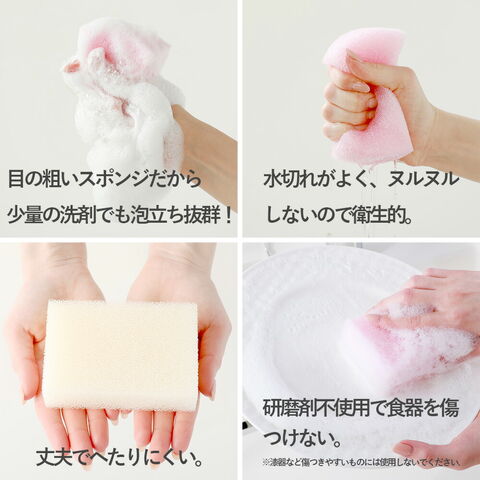 ・スポンジの特性上、洗い物の色が移ることがあります。また保管の期間・温度によっても色が変わることがあります。