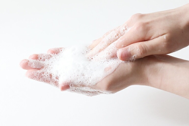 ー(2-2)泡立てる洗顔ー![]() ■泡で洗いたい・まつ毛エクステ等をされている方 水またはぬるま湯を加え泡立てネットでよく泡立てます その後、お顔の隅々を包み込むように洗顔し、 十分に洗い流してください。 | |