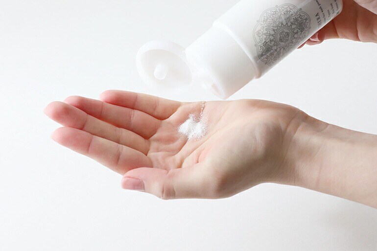 | 「(2-1)泡立てない/(2-2)泡立てる」 いずれかの方法をお選びいただき、 水かぬるま湯でパウダーを溶かします。 ー(2-1)泡立てない洗顔ー ![]() ■忙しい毎日の時間短縮をしたい方 水またはぬるま湯を加え、よく練ります | |