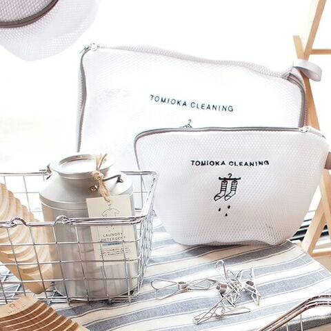 | 大切な衣類を優しく保護する 底のマチが広いランドリーネット お気に入りの洋服に「シワがつく」「毛玉ができた」という悩みはありませんか?そんな悩みにお応えしたのが、とみおかクリーニングのランドリーネットです。洗濯ネットを使用することで、洗濯中に起こる他の洗濯物との絡み合いを和らげることができ、洗濯物が受けるダメージを軽減することができます。 洗濯時の必需品として、旅行用の小物入れとしてもお使いいただけます。 サイズ:幅280×高さ187(mm) | |