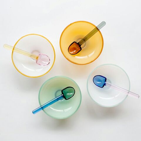 デザートの時間がもっと楽しくなる、 ミルクガラスに、透明ガラスのフチと高台を組み合わせたデザートボウル。アイスクリームにゼリーやプリンなどのデザート、そしてフルーツなどの器としてご使用いただけます。 高台付きのフォルムでいつものデザートも特別に。