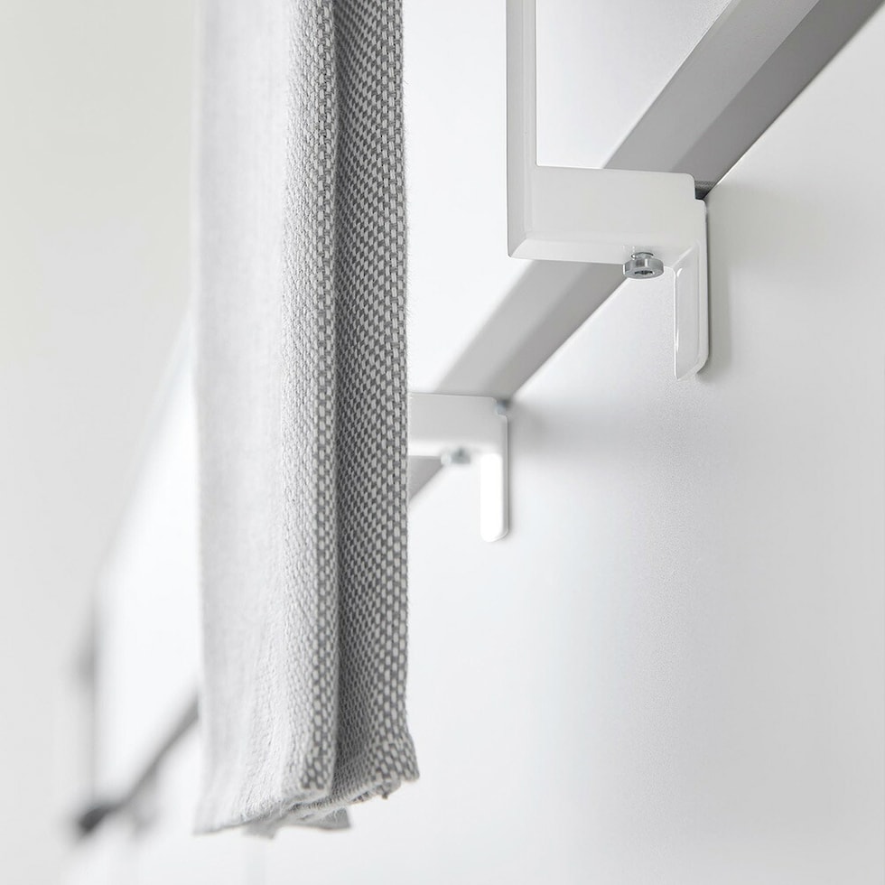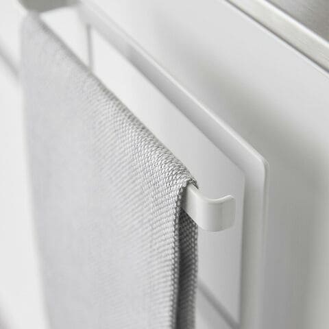 ハンガーは片側が開いている仕様でタオルを横からサッと掛けることができ、取り替えもスムーズ。タオルが落下しにくいように先端が少し曲がっています。