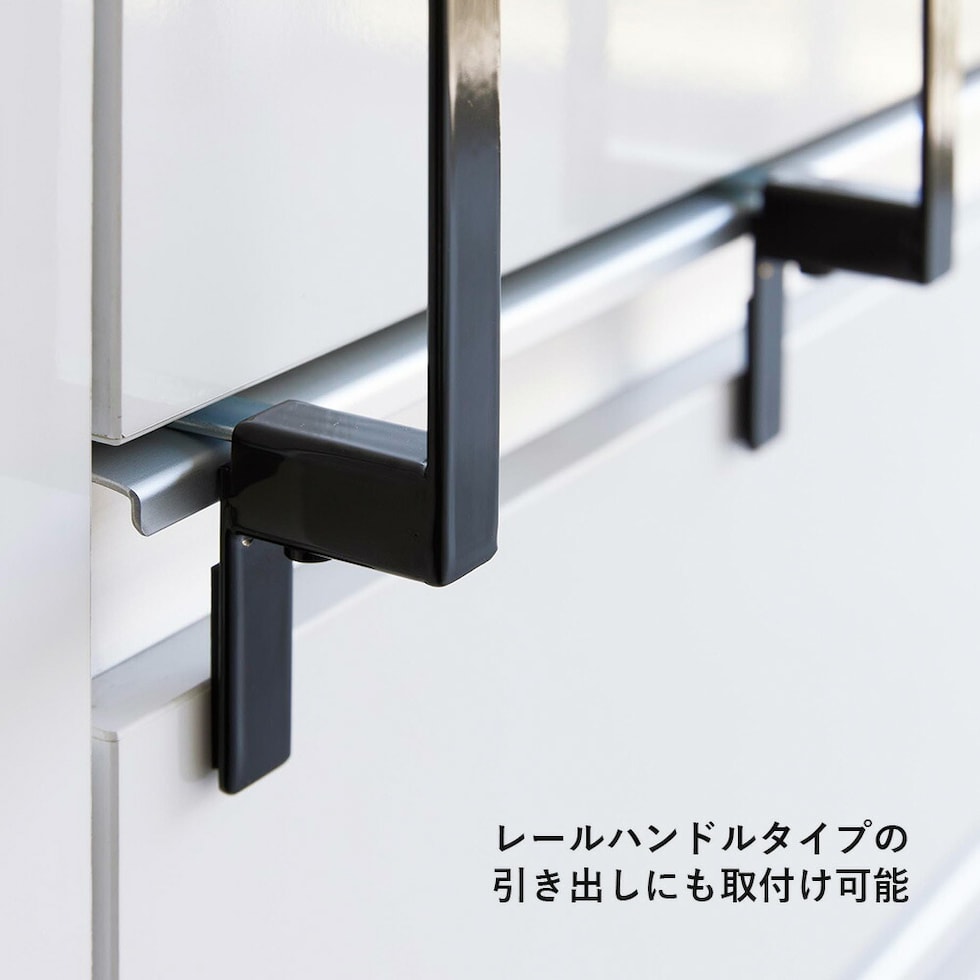 レールハンドルなど、凹凸のある取っ手の引き出しにも設置可能です。 | 選べる高さ2タイプ