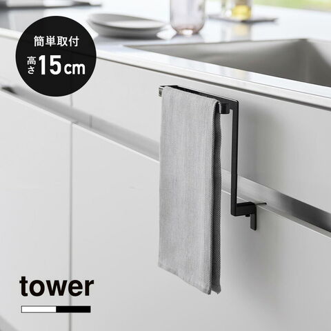 山崎実業 tower キッチンシンク下収納扉タオルハンガー H15cm タワー タオルハンガー 1590 1591 キッチン収納 タオル掛け タオルかけ タオルホルダー タオルバー シンク下 収納扉 台所 ふきん掛け 雑貨 タオル掛け