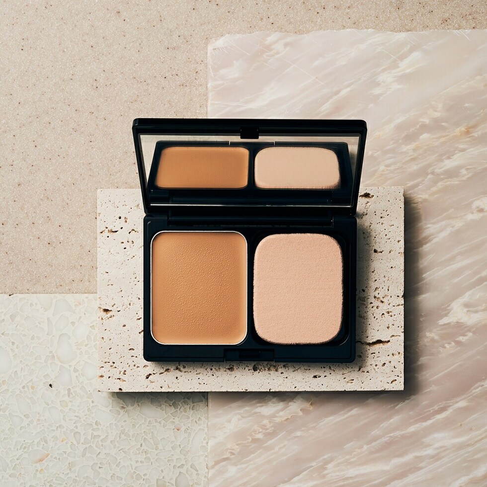 シミ、毛穴をしっかりカバー。 コメヌカ発酵液やタマヌオイルなどの保湿美容液成分を閉じ込めた、クリーミーな固形ファンデーションです。