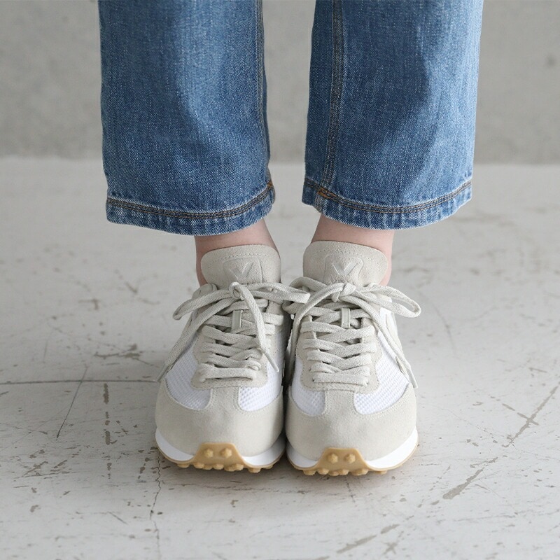 | 2005年にスタートしたフランスのサスティナブルスニーカーブランド「VEJA」。素材調達から生産・販売までの過程で、持続可能なスニーカーづくりを行っています。 アッパー部分にメッシュとスウェードを採用した、都会的かつレトロなムードが漂うスニーカー「RIO BRANCO」。2つの素材の切り替えで大人っぽい雰囲気に仕上げてくれます。 VEJAこだわりのアマゾン産天然ゴムを使用したソールで、履き心地の良さも魅力。長時間履いていても疲れにくいです。 スタイリッシュなデザインで様々なコーディネートに合わせやすく、1足は持っていたい、マルチに使えるスニーカーです。 トップ写真 : WHITE PIERRE NATURAL | ||||||||||||||