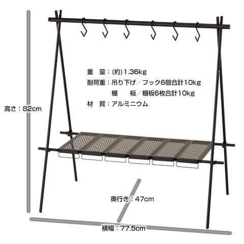 マルチハンギングラック/BUNDOK(バンドック)/BD-919/ハンギングラック ハンガーラック キャンプ アウトドア 棚 天板 フック 収納 テーブル 折りたたみ 折り畳み コンパクト 耐熱 軽量 アルミ 収納ケース 収納袋