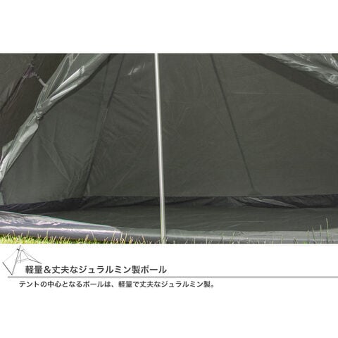 本製品はファミリーキャンプ用として製作してありますので山岳用、常設、日常使用の頻度の高い使用は避けてください。防水加工をしておりますが、完全防水ではございません。タープや防水スプレーなどで二重三重の備え、および細やかなお手入れを心掛けてください。必ず2名以上で組立をおこなってください。