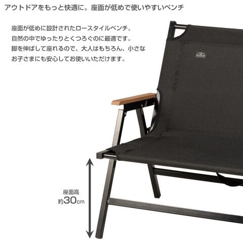 ロースタイルベンチ/BUNDOK(バンドック)/BD-173/ベンチ フォールディング 背もたれ 手すり 低座面 ローベンチ 肘掛け 折りたたみ 椅子 野外 アウトドア 軽量 レジャー ベンチ 長椅子 長いす スポーツ観戦 運動会 ロングベンチ