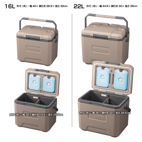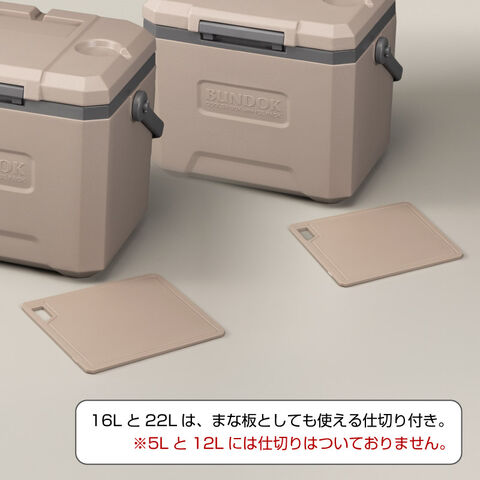 大きめサイズの16Lと22Lにはまな板にも使える仕切り付き。キャンプやアウトドア時にちょっとした調理や食材などを一時的に置いておく事が出来ます。