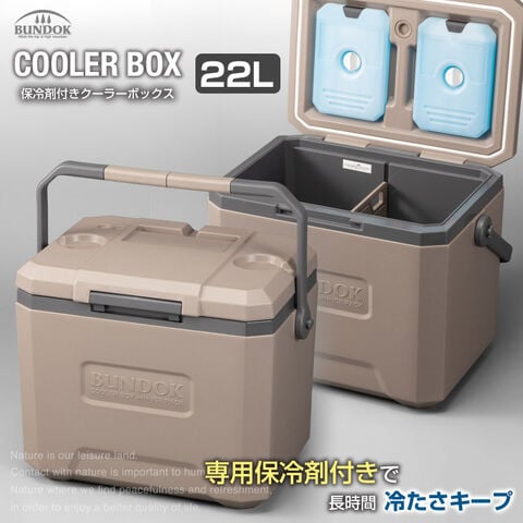 クーラーボックス 保冷剤付き 22L/BUNDOK(バンドック)/BD-757/クーラーボックス 保冷剤 保冷剤付き 一体型 保冷ボックス クーラーバッグ アウトドア キャンプ 無地 シンプル ウォームグレー グレー おしゃれ 大型