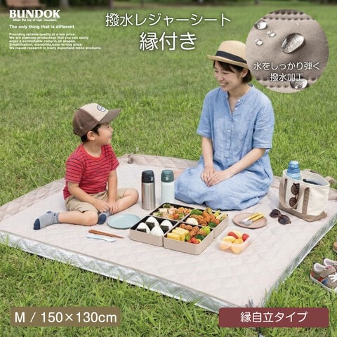 撥水レジャーシート 縁付き Mサイズ/BUNDOK(バンドック)/BD-575WG/レジャーシート レジャーマット 厚手 縁が立つ バスタブ型 ペグ付き お座敷スタイル 防水 150×130 キルティング ピクニックシート キャンプ グランドシート 運動会 ファミリー コンパクト