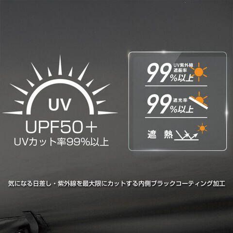 生地はブラックコーティング加工により遮光率・UV遮蔽率99%以上を実現。強い日差しや紫外線を効果的に遮断します。