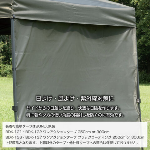 タープサイドウォール 300cm ブラックコーティング/BUNDOK(バンドック)/BD-511/タープ テント サイドウォール サイドシート 横幕 日除け 熱中症 風除け 仕切り 遮光 遮熱 UVカット 紫外線対策 UPF50+ シェード 取り付け式 後付け式