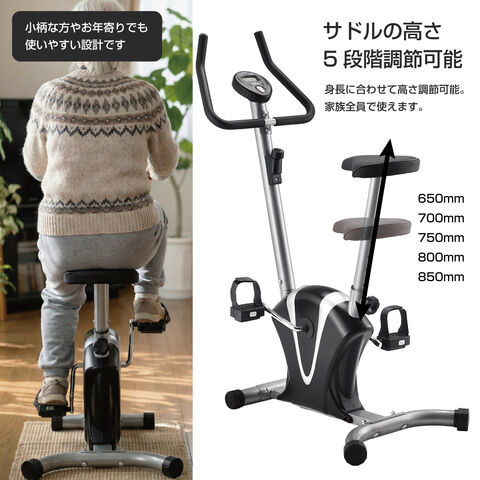 ペダルの負荷を調節出来るダイヤルに、サドルの高さ5段階調節機能。体力や体型に合わせて家族で使用可能です。マグネット負荷とベルトの駆動で静かでスムーズな回転を実現。