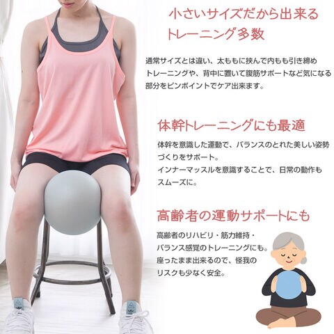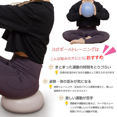 日々のストレッチや体幹トレーニングにぴったりな、直径約20cmのヨガボール。軽くてやわらかく、初心者やご年配の方でも安心して使えるコンパクトサイズです。