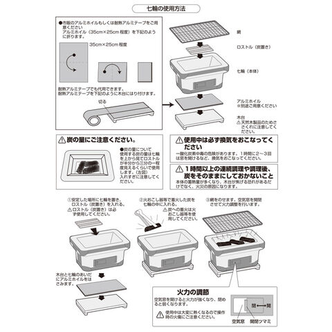 室内、テント内、換気の悪い場所では使用しないでください。一酸化中毒、酸欠、火災の恐れがあります。練炭はご使用しないでください。