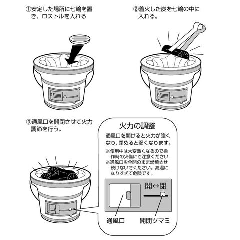 室内、テント内、換気の悪い場所では使用しないでください。一酸化中毒、酸欠、火災の恐れがあります。練炭はご使用しないでください。