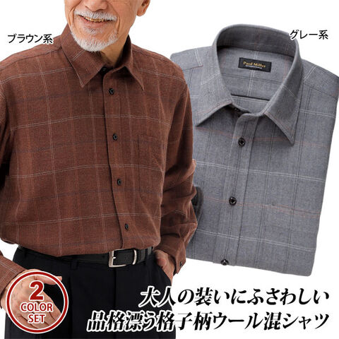 PAUL MILLER ポール・ミラー ウール混カジュアルシャツ 同サイズ2色組 メンズ 秋冬春 40代 50代 60代 378-62200K-HA