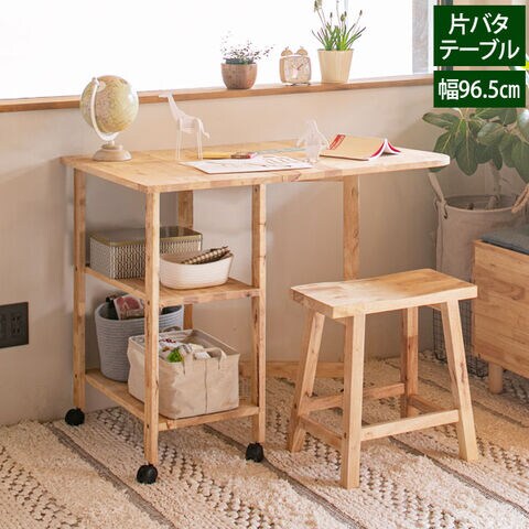 片バタテーブル 幅96.5cm 天然木 棚板付き簡易テーブル NATURAL SIGNATURE キャスター付 3919AT-LI