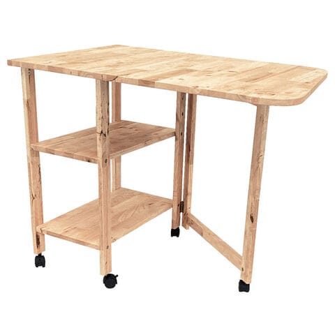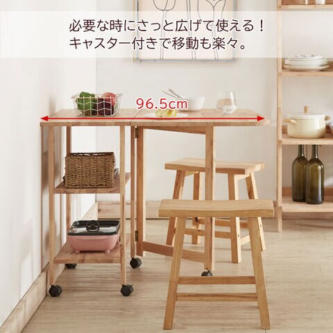 必要な時にさっと広げて使える棚板付き簡易テーブルです。キャスター付きで移動も楽々。ちょっとした作業台に最適です。飽きのこないシンプルなデザインが魅力で、年代を問わずご使用いただけます。