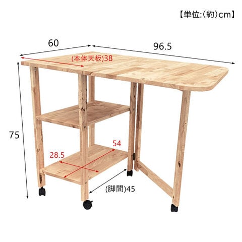 | サイズ(約) | 幅96.5×奥行60×高さ75cm 収納時/幅40×奥行60×高さ75cm |