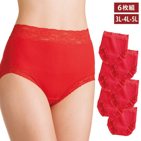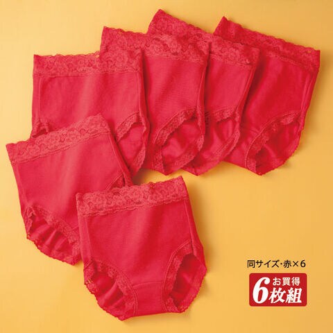 赤の力で健康サポートショーツ 同サイズ6枚組 3L・4L・5L 赤い肌着 レディース 婦人下着 433387