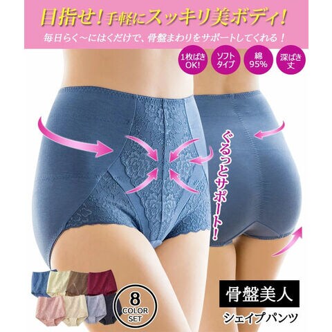 骨盤美人シェイプパンツ 同サイズ8色組 M・L・LL スッキリ美ボディ ソフトタイプ レディース 婦人下着 442159