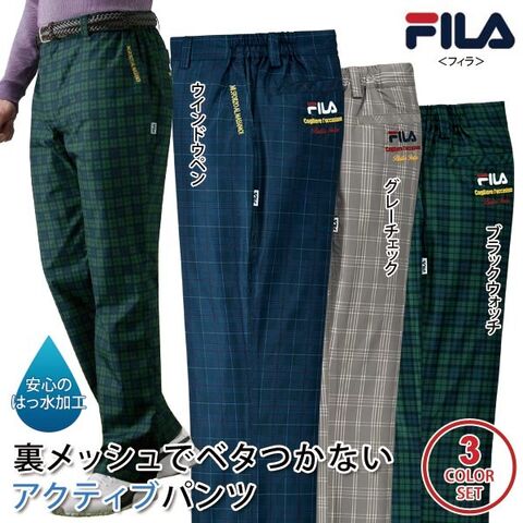 FILA フィラ 裏メッシュアクティブパンツ 同サイズ3色組 選べる股下 はっ水加工 メンズ 春秋 40代 50代 60代 444306