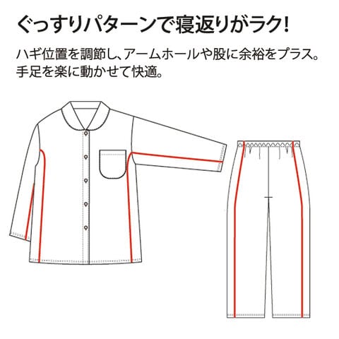 | 仕様 | 上着/前ボタン全開(5個)、左右ポケット パンツ/ウエスト総ゴム(取替口有) |