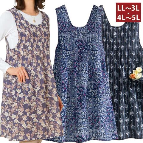 エレガントちりめんエプロン 同サイズ3色組 LL-3L・4L-5L プリーツエプロン レディース 部屋着 452552