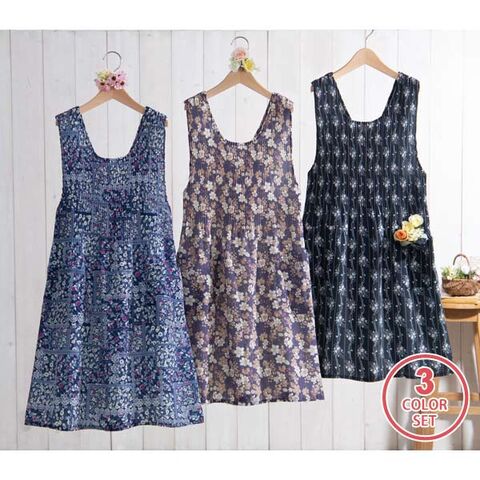軽くて着やすいちりめん素材のプリーツエプロン。ほどよく身体にフィットして、メリハリのある美しいシルエットで着用できます。便利なポケット付き。中花柄・パッチワーク柄・ストライプ柄の同サイズ3色組で洗い替えにも便利です。エレガントで華やかなエプロンで毎日の料理が楽しくなるアイテムです。