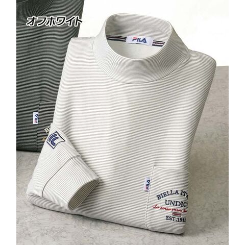 FILA ポケット付ボーダーハイネックシャツ 同サイズ3色組 なめらか素材 ソフトな着心地 秋冬 40代 50代 60代 957705