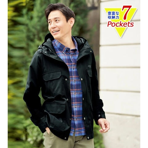 外側6、内側1の合計7ポケット搭載で収納力抜群!手ぶらで身軽に行動できるマウンテンパーカー。フードはつばが付いた本格仕様。表地は安心感のあるはっ水加工済みでタウンユースはもちろん、キャンプやハイキング等のアウトドアシーンでも大活躍。合わせやすい定番カラーのブラックとベージュの2色展開です。