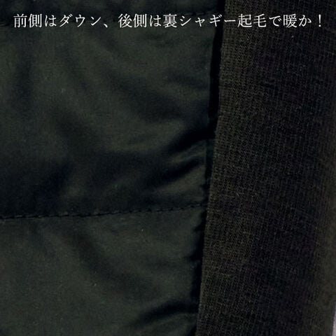 | 素材 | 【前身頃】 表側/ポリエステル100% 裏側/ポリエステル100% 中綿部分/ダウン54%、複合繊維(ポリエステル・ポリエチレン)40%、フェザー6% 【後身頃】 ポリエステル100% |