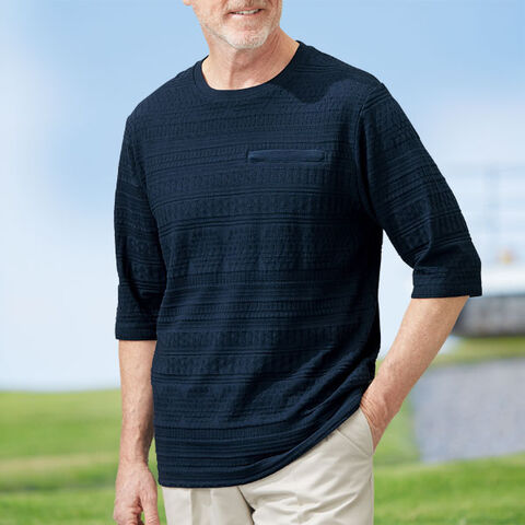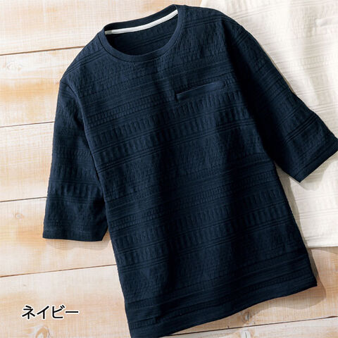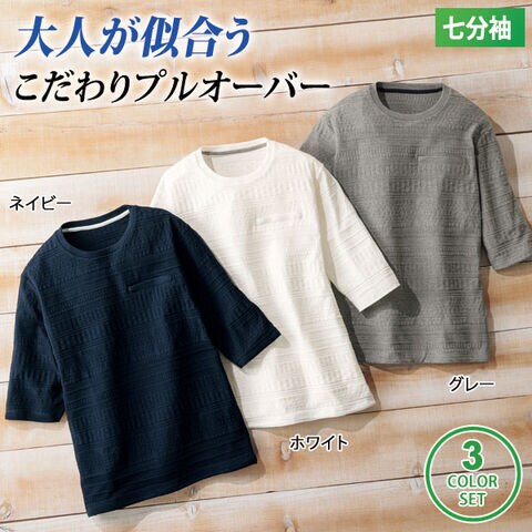 ファスナーポケット付き編地柄プルオーバー 同サイズ3色組 七分袖 綿混ジャガード素材 メンズ 春夏秋 40代 50代 60代 958314