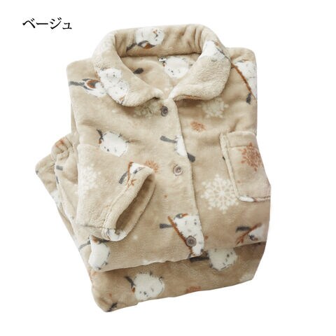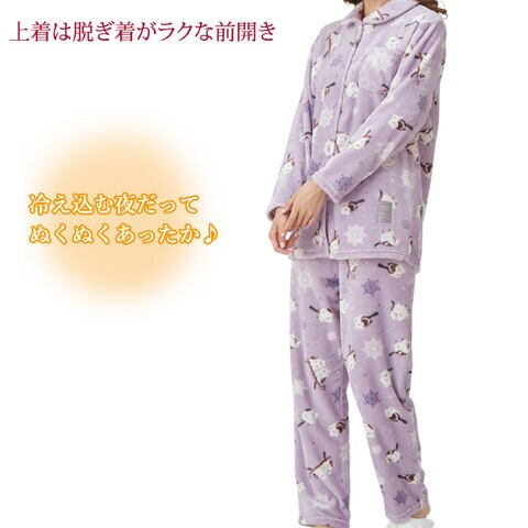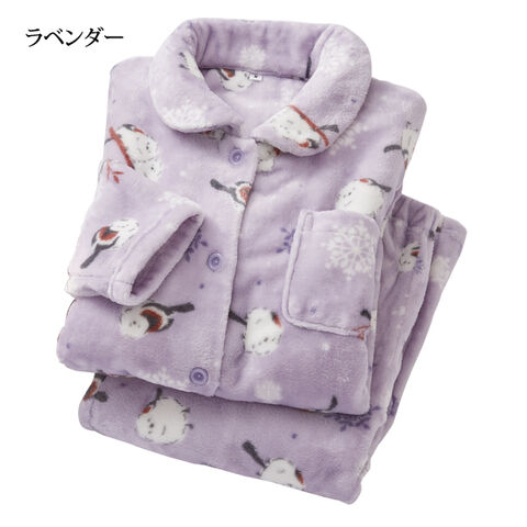 シマエナガに癒される、軽くて暖かなふわもこパジャマ。ふんわり軽くとろけるような肌触りのクリーミーなあったか素材にうっとり。全身が優しいぬくもりに包まれて、リラックスタイムからお休み時間までぽっかぽか快適に過ごせそう。上着は脱ぎ着がラクな前開き仕様。雪の妖精といわれている鳥「シマエナガ」の可愛いプリント柄でカラーはラベンダーとベージュの2色からお選びいただけます。