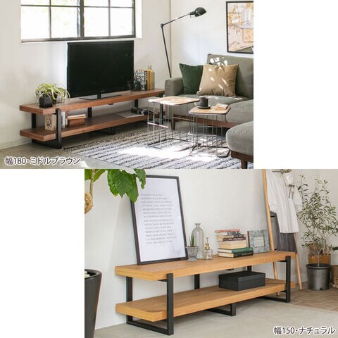 直線的でシンプルなシルエットが特徴のローボードアレッシア。天板に厚みをもたせる事で天然木のあたたかみが感じられ、ナチュラルな風合い。仕切りのないデザインだからボックスやかごなどを使って自分の使いやすいようにアレンジが可能です。カラーははっきりとした美しい木目が特徴のナチュラル(オーク材)としなやかで暖かみのある木目が楽しめるミドルブラウン(ウォールナット材)の2色展開です。オイル仕上げで使い込むほどに味わいが増します。設置スペースにあわせて、幅150・180cmの2サイズからお選びいただけます。