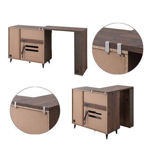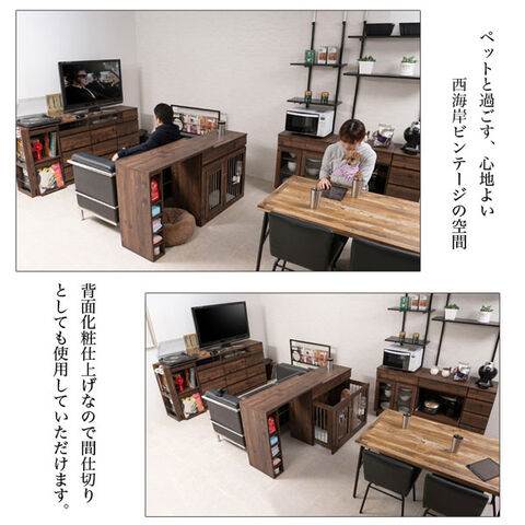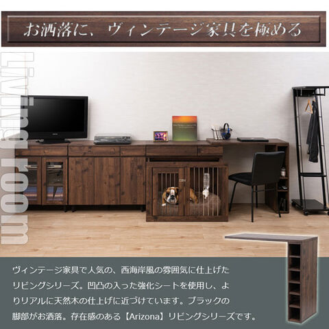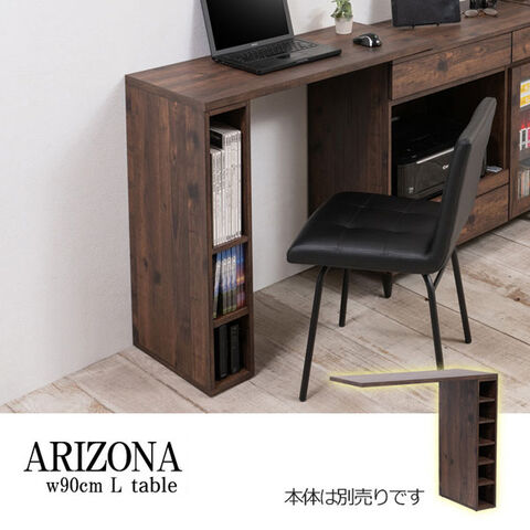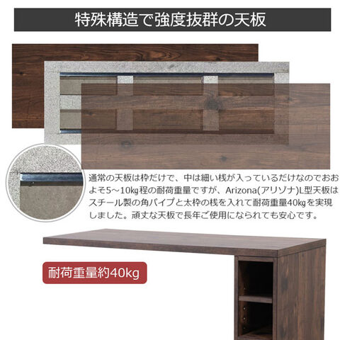 ヴィンテージ感漂う深みのあるブラウンをベースにした、美脚効果で軽やかでスタイリッシュなデザインに仕上げたL字拡張テーブル。特殊構造で強度抜群の天板は、通常の天板は枠だけで、中は細い桟が入っているだけなのでおおよそ5~10kg程の耐荷重量ですが、Arizona(アリゾナ)L型天板はスチール製の角パイプと太枠の桟を入れて耐荷重量40kgを実現しました。頑丈な天板で長年ご使用になられても安心です。棚板付きのラックで、様々なものが収納可能。中心にある固定棚と4枚の可動棚で、収納物に合わせて高さを調節して棚板を外せば雑誌やペットボトルも入るので、用途に合わせてお使いいただけます。また配線もできるようになっているので、タップなどを入れて電化製品をご使用になる時も便利です。さわやかで心地いいお部屋は理想的で憧れるインテリアで、気取らずそれでいて、かっこよさを忘れないスタイルも西海岸風インテリアの特徴。重厚感あるカラーリングに絶妙なサイズバランスはARIZONAの真骨頂。