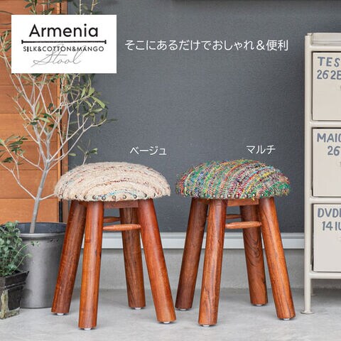 木製スツール アルメニア マンゴー材 ファブリック アジアンテイスト 椅子 armenia-LI