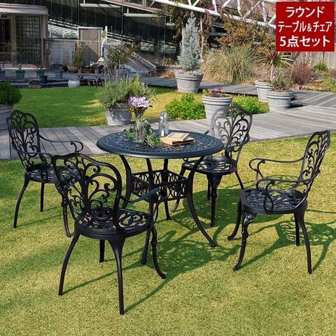 アルミ製 ラウンドテーブル&チェア 5点セット トルペ ガーデン家具 マットブラック BKS-RT900-5PS