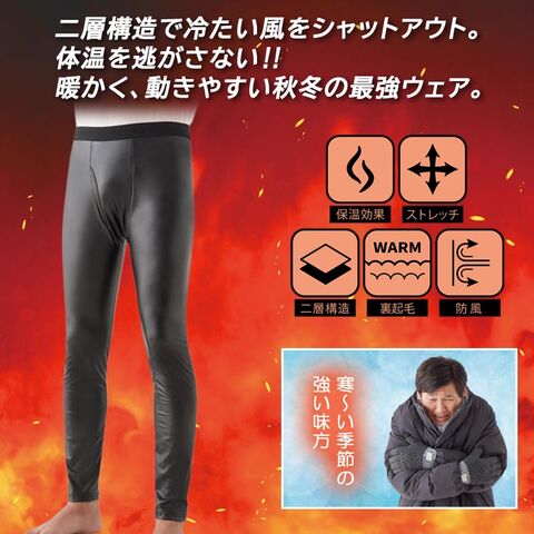 防風保温ストレッチパンツ メンズ 裏起毛 保温 二層構造 防寒 ロングタイツ 秋冬インナー スポーツ アウトドア