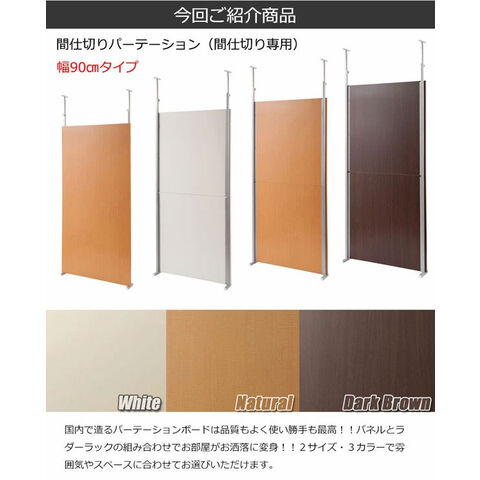 大好評の間仕切りパーテーションシリーズにシンプルな間仕切りボードタイプが登場!収納も何も必要のない間仕切りのみが必要な方や同シリーズを組み合わせてお使いいただくことでメリハリのある空間が完成します。ドアカーテンをセットすれば入り口も出来上がり。設置場所やお部屋の雰囲気にあわせてホワイト、ナチュラル、ダークブラウンの3カラーよりお選び頂けます。