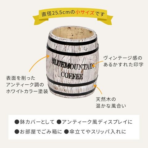 コーヒーバレル 小サイズ ホワイト 直径25.5cm コーヒー樽 木製プランター ディスプレイ CB-2330N-WHT