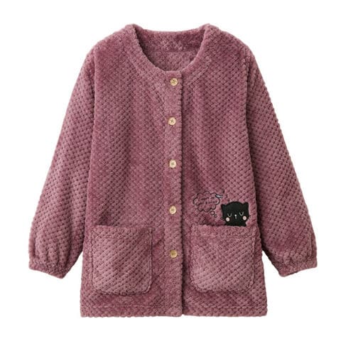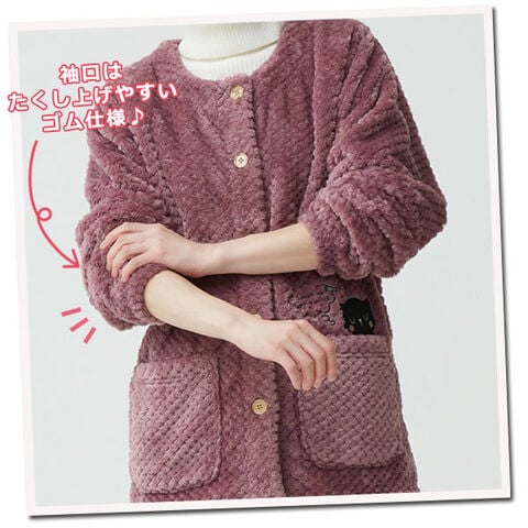 毛布のようなふわふわの生地感で、ぽかぽか暖かいかっぽう着。ポケット周りの猫ちゃんのアップリケにほっこり、癒されるデザイン。大き目のボタンで前開き全開仕様で、脱ぎ着もラクラク。左右にスマホもすっぽり入る便利なポケット付き。袖口はたくし上げやすいゴム仕様で料理や水仕事などでも洋服が汚れないのが嬉しいポイント。お尻がすっぽり隠れるロング丈も◎。サッと羽織って寒い季節もあったか、重宝すること間違いなしの一着です。カラーはローズとグレーの2色展開。猫好きの方へのプレゼントに、母の日、敬老の日など、大切な方へのプレゼントにもオススメです。