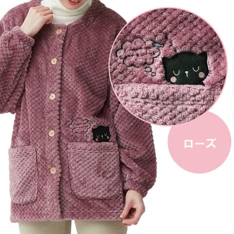 ネコ柄ふわふわかっぽう着 着る毛布 ふわふわ毛布 猫 アップリケ 袖口ゴム レディース 秋冬春