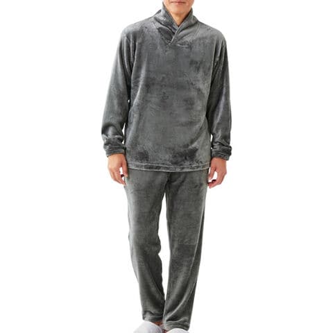 ふんわりとした触り心地が気持ちいい毛布生地のメンズパジャマ。衿を立てると首まわりをすっぽり包み込んでとっても暖か。袖口はゴム仕様で冷気が入りにくく快適な着心地です。ウエストは総ゴムで楽ちん。お家でゆっくりくつろぐリラックスウエアとしてもオススメです。パンツは左右ポケット付きなので、パンツだけでも便利にお使いいただけます。飽きのこないシンプルデザインでカラーはネイビーとチャコールグレーの2色からお選びいただけます。父の日、敬老の日など、大切な方へのプレゼントにもオススメです。
