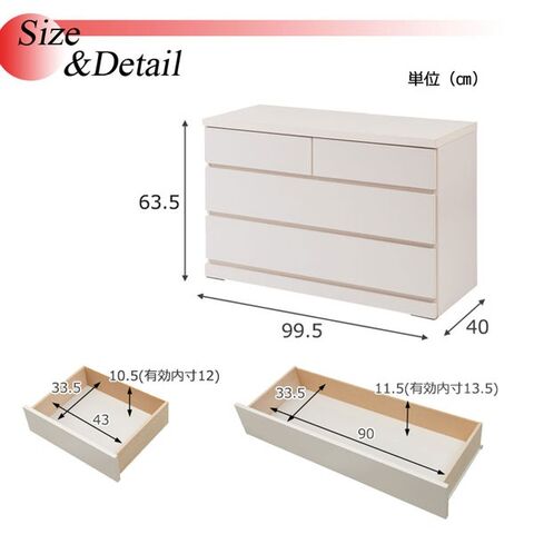 | 内寸(約) | 引出し/(小)幅43×奥行33.5×深さ10.5(有効内寸12)cm、(大)幅90×奥行33.5×深さ11.5(有効内寸13.5)cm |